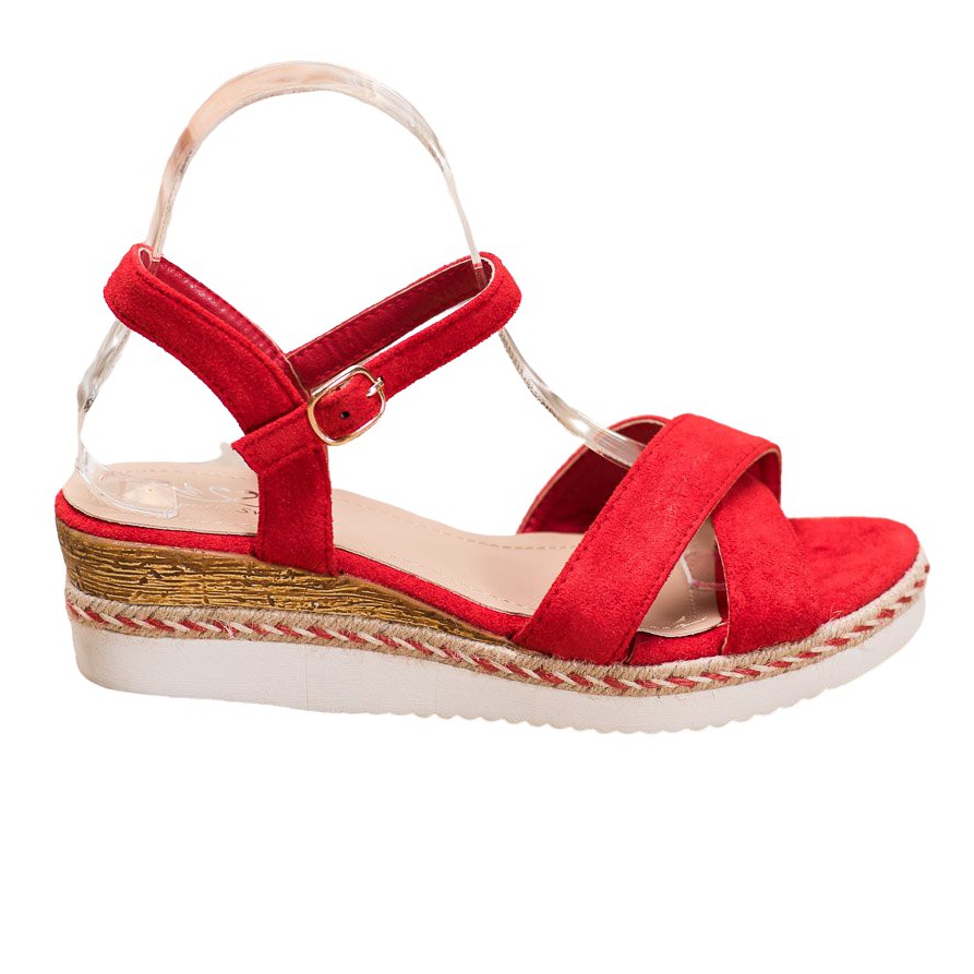 Upptäck sommarelegans med Small Swan wedge sandaler i en intensiv röd färg, som kommer att vara ett perfekt komplement till din semestergarderob. Dessa imponerande skor kännetecknas inte bara av en vacker nyans som kontrasterar perfekt med huden, utan också av en glänsande glitterfinish som kommer att ge lite glans till varje styling.