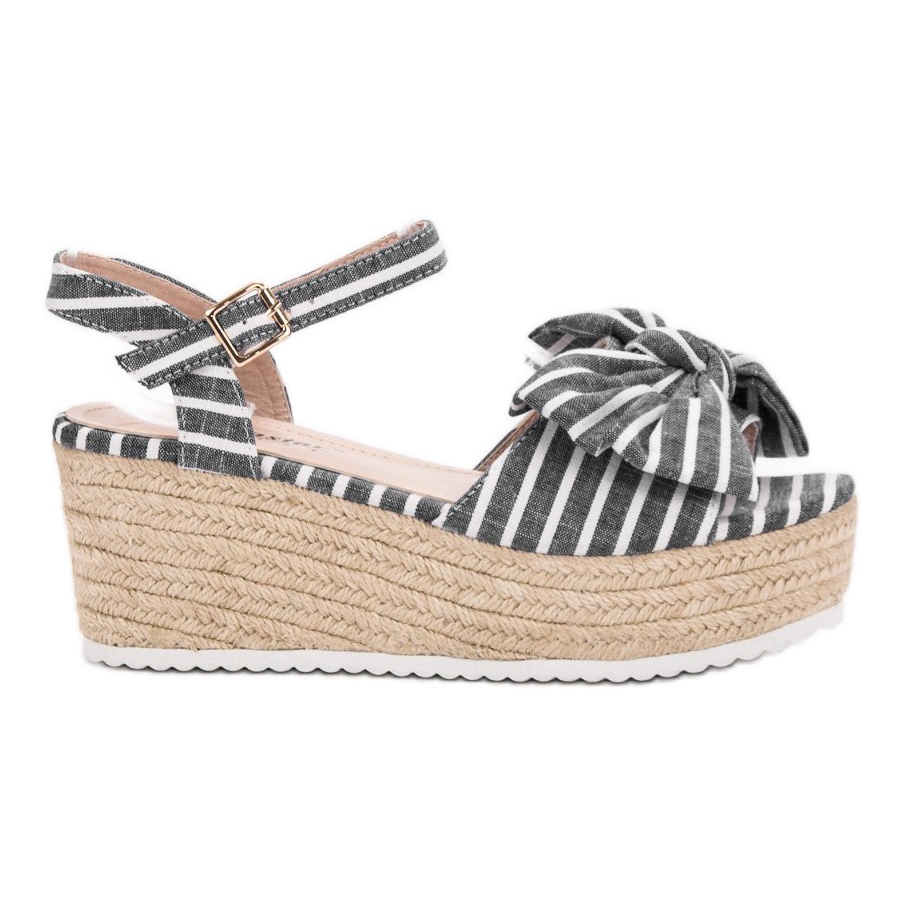 Upptäck sommarens charm med Seastar kilsandaler i en vacker grå nyans, som kommer att glädja alla älskare av pin-up-stil! Dessa unika sandaler, gjorda av högkvalitativt tyg med ett moderiktigt mönster av gråa och vita ränder, kombinerar komfort, elegans och flickaktig charm.