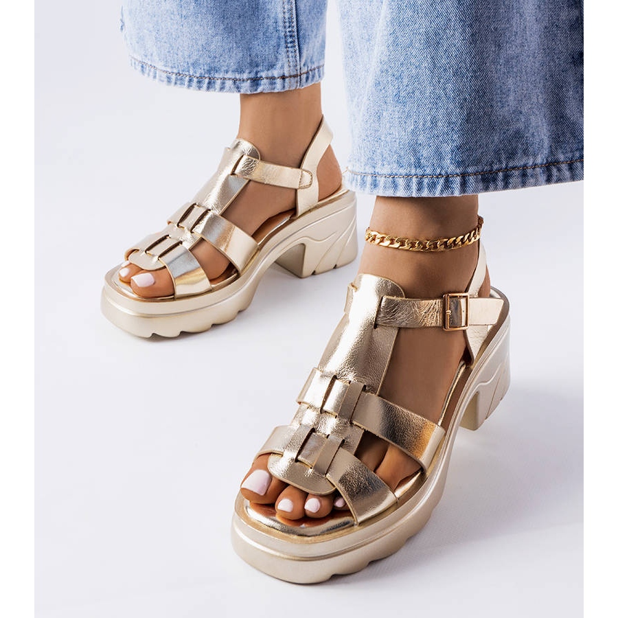Stil, komfort och lyx - dessa sandaler är det perfekta valet för sommardagar och nätter fulla av överraskningar. BM Gold Sunset sandaler med blockklackar är skor där varje steg kommer att betona det unika i ögonblicket med glöden av guld.