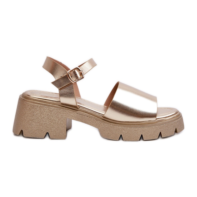 Detaljer: Sandaler med tjocka klackar för kvinnor, guld Dottiassa gyllene