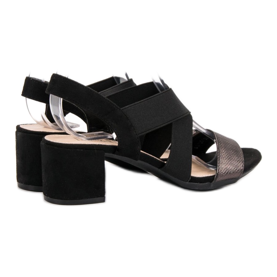 Vinceza svarta glittersandaler är det perfekta valet för kvinnor som vill lägga till elegans och chic till sin styling. Dessa unika sandaler är gjorda av högkvalitativt naturligt läder, vilket säkerställer inte bara hållbarhet utan också användarvänlighet. Deras klassiska svarta färg passar perfekt till många sommarkläder, och tillägget av lila ränder dekorerade med glitter ger dem en extraordinär charm.