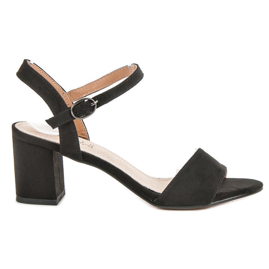 Vi presenterar vackra högklackade damsandaler från Evento i en klassisk svart färg. Dessa eleganta skor är ett obestridligt måste i varje moderiktig garderob. Deras tidlösa design gör att de passar bra med en mängd olika stilar, från vardagsset till kvällsoutfits.