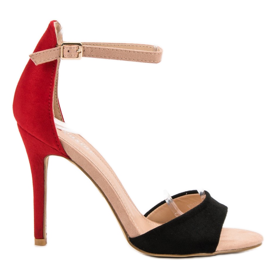 Seastar högklackade sandaler i klassisk svart är det perfekta valet för kvinnor som vill framhäva sin elegans och stil. Kombinationen av svart material av ekologiskt mockaskinn med röda accenter skapar en iögonfallande och moderiktig design. En hög stilett på 10,5 cm framhäver benen vackert och ger dem smalhet och femininitet.