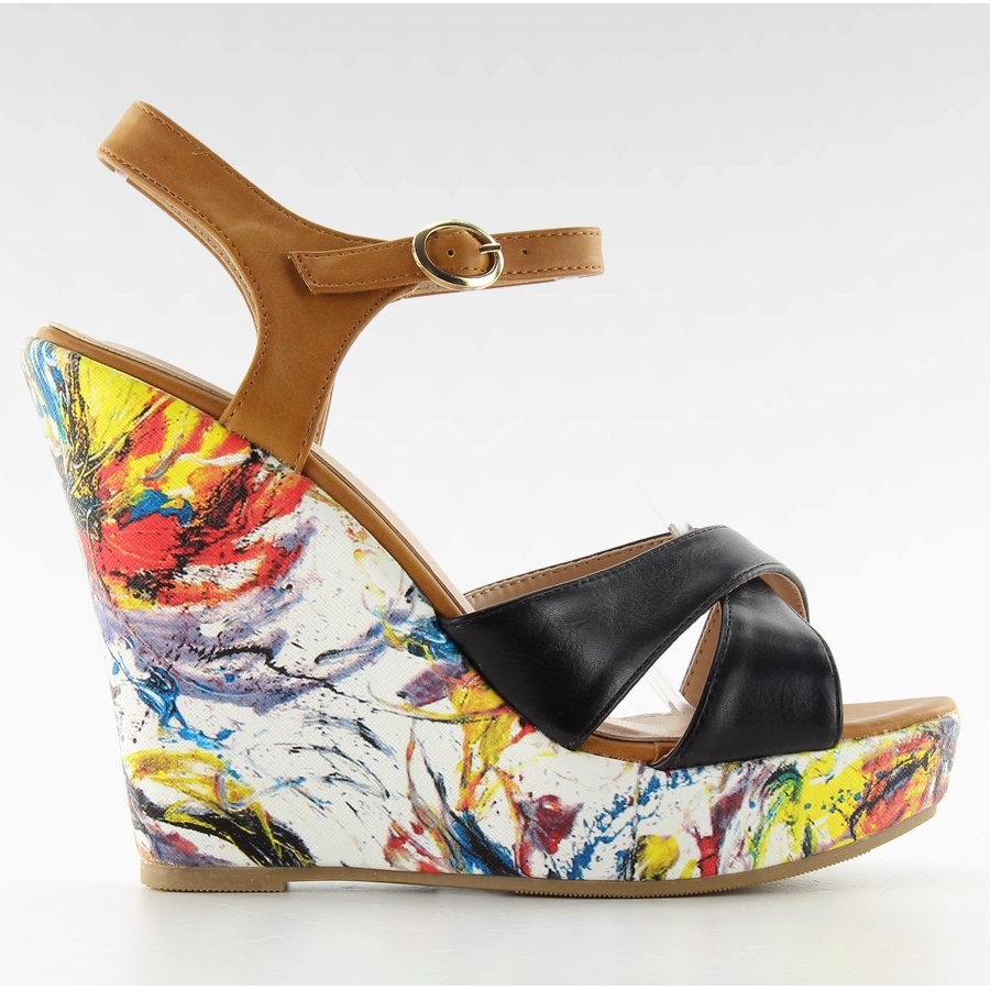 Målade kilsandaler LM-521 - svart (svart / brun / beige)