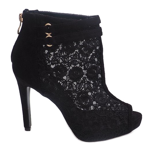 Svarta högklackade sandaler utmärks av en subtil men elegant detalj i form av spets, vilket ger dem en unik stil och klass. Tillverkade av högkvalitativt ekologiskt läder, de är inte bara moderiktiga utan också miljövänliga. Den stabila hälen gör att du kan njuta av bärkomfort hela dagen, oavsett tillfälle.