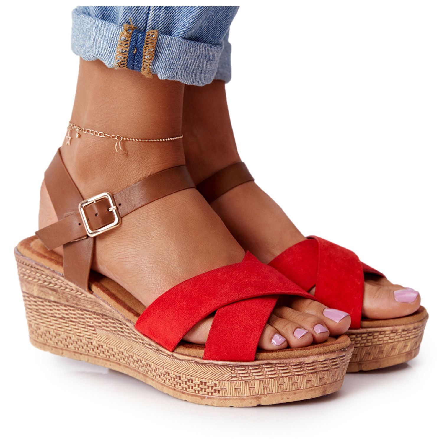 Detaljer: S.Barski Sandaler på kil S. Barski GD-38 röd brun