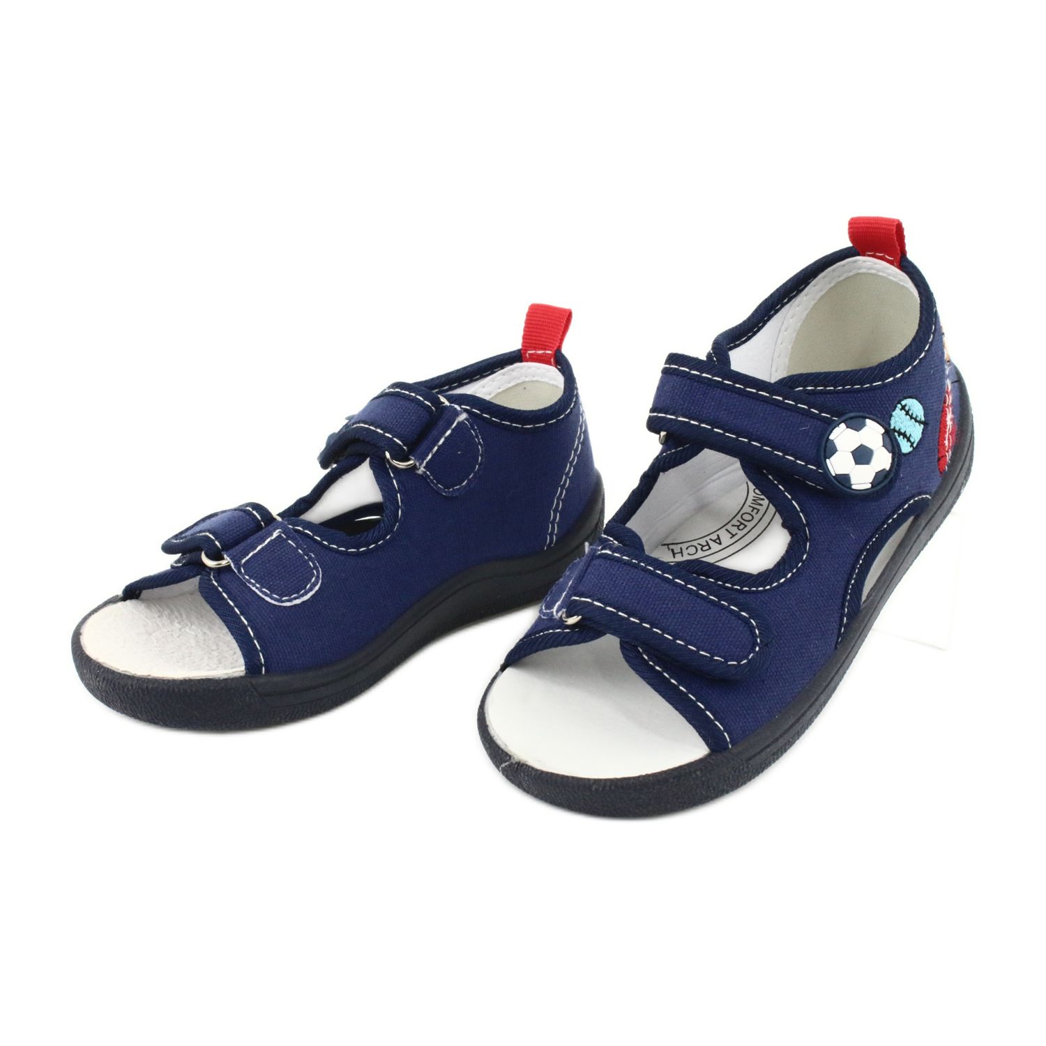 American Club TEN27 toffelsandaler för pojkar är ett perfekt val för små upptäcktsresande som behöver bekväma och funktionella skor. Tillverkade av högkvalitativt textilmaterial garanterar de komfort att bära både hemma, på dagis och på gården. Den marinblå färgen med bollmotiv gör dem inte bara praktiska, utan även attraktiva för pojkar.