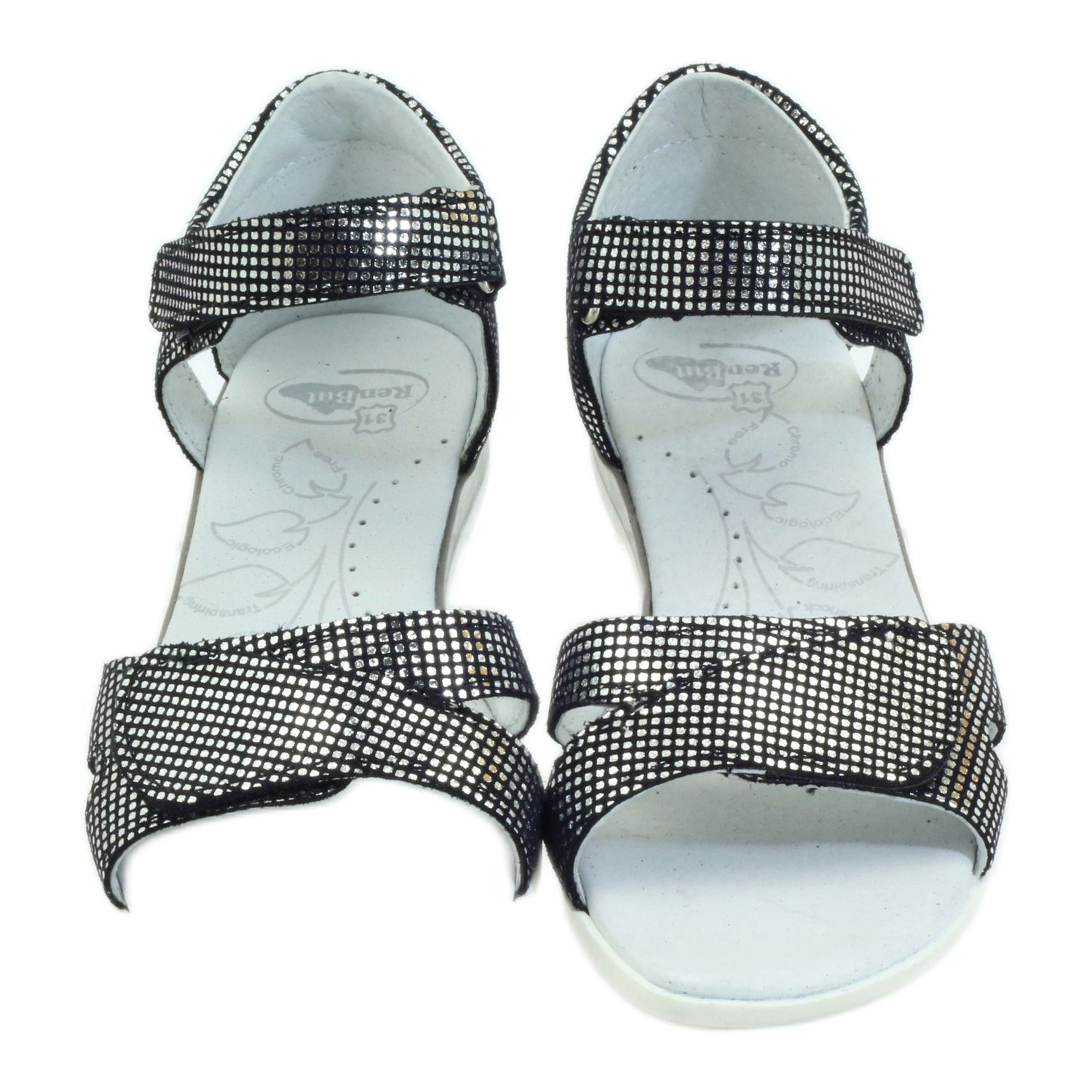 Skor fästa med kardborreband garanterar snabb och enkel påtagning, vilket säkert kommer att uppskattas av både barn och deras föräldrar. Sandalerna är utrustade med en styv hälräknare, som stabiliserar foten, och den profilerade innersulan av naturläder, förfinad med silverjoner, ökar bärkomforten genom att förhindra utveckling av mikroorganismer och obehagliga lukter.