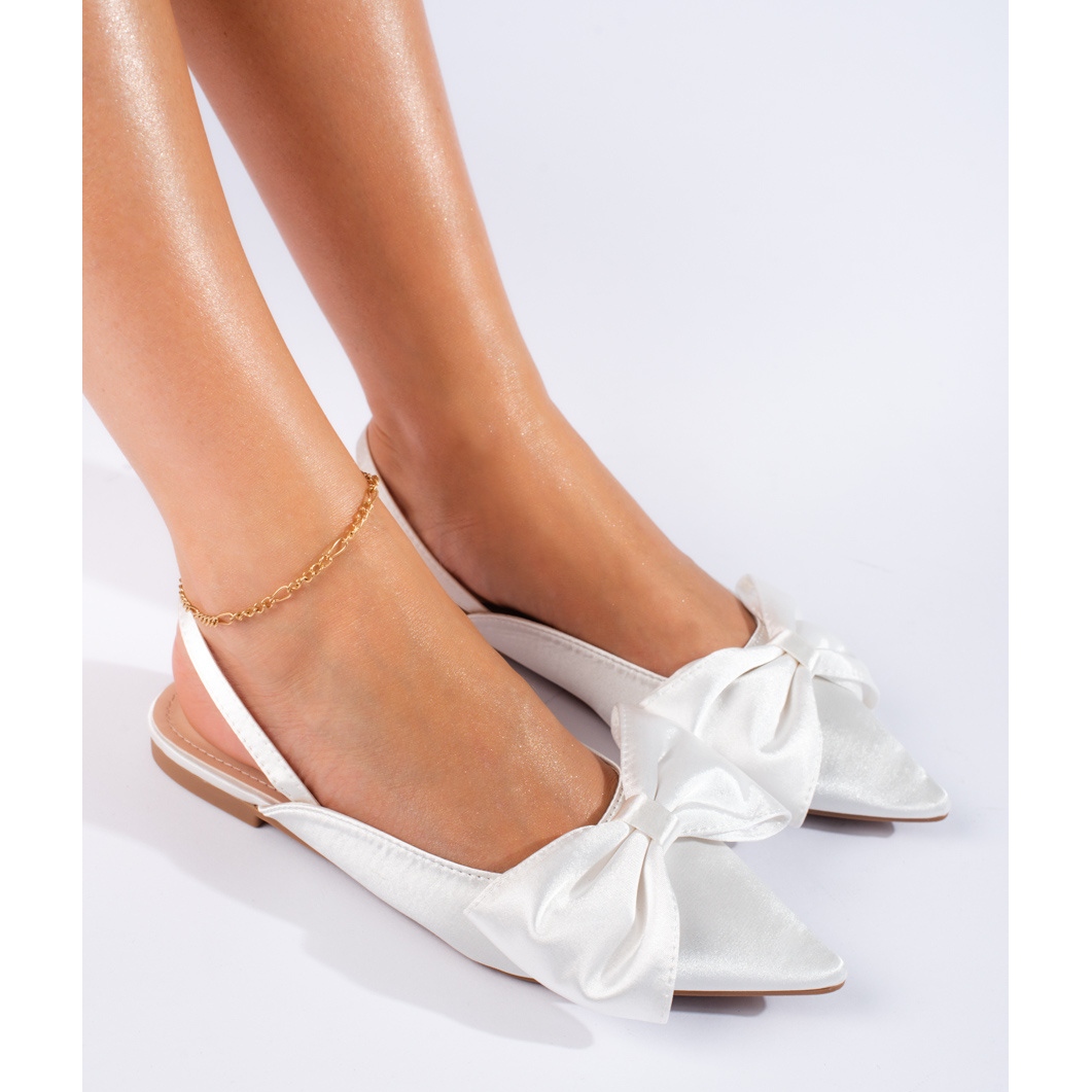 Detaljer: Satinballerinor för kvinnor med rosett i vit Shelovet