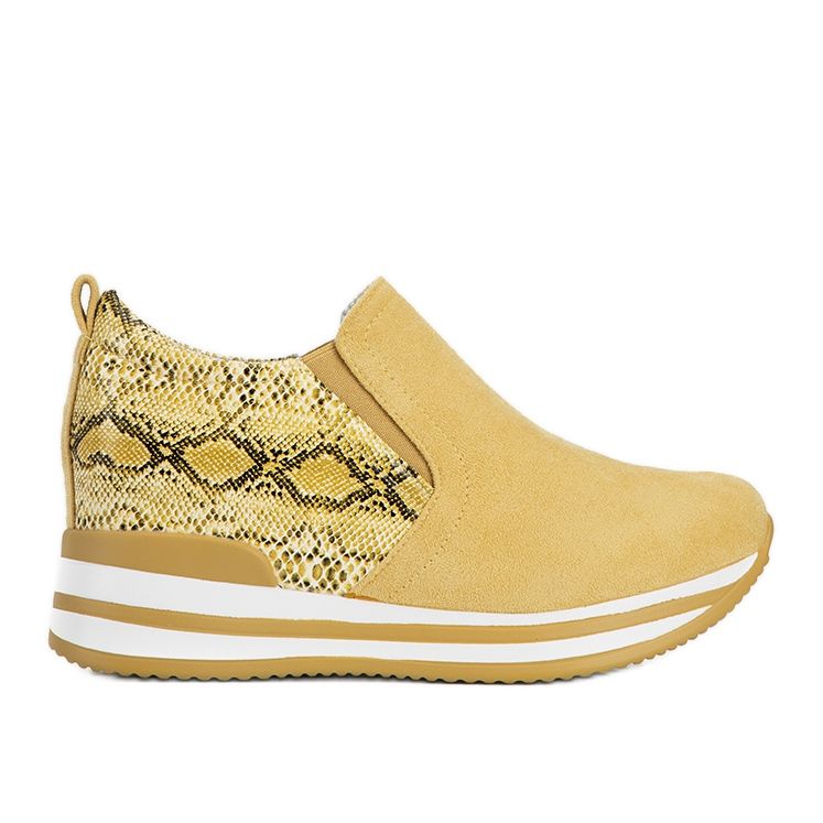 Sneakersna är gjorda av ekologiskt mockaläder i en saftig gul nyans, vilket är en hit för den kommande säsongen. En extra accent i form av ett ormskinnsmotiv gör att denna modell sticker ut från andra.