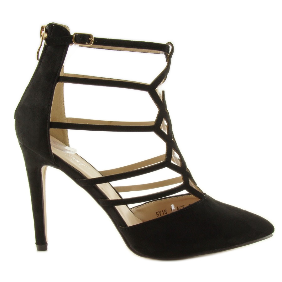 Pumparna kännetecknas av sin ursprungliga design tack vare de korsade banden på vristen, som inte bara ser vackra ut utan också ger utmärkt fotstöd. Perfekt för speciella tillfällen, kvällsutflykter eller eleganta möten - SY18 svart är ett förslag för kvinnor som vill kombinera komfort med moderiktig chic.
