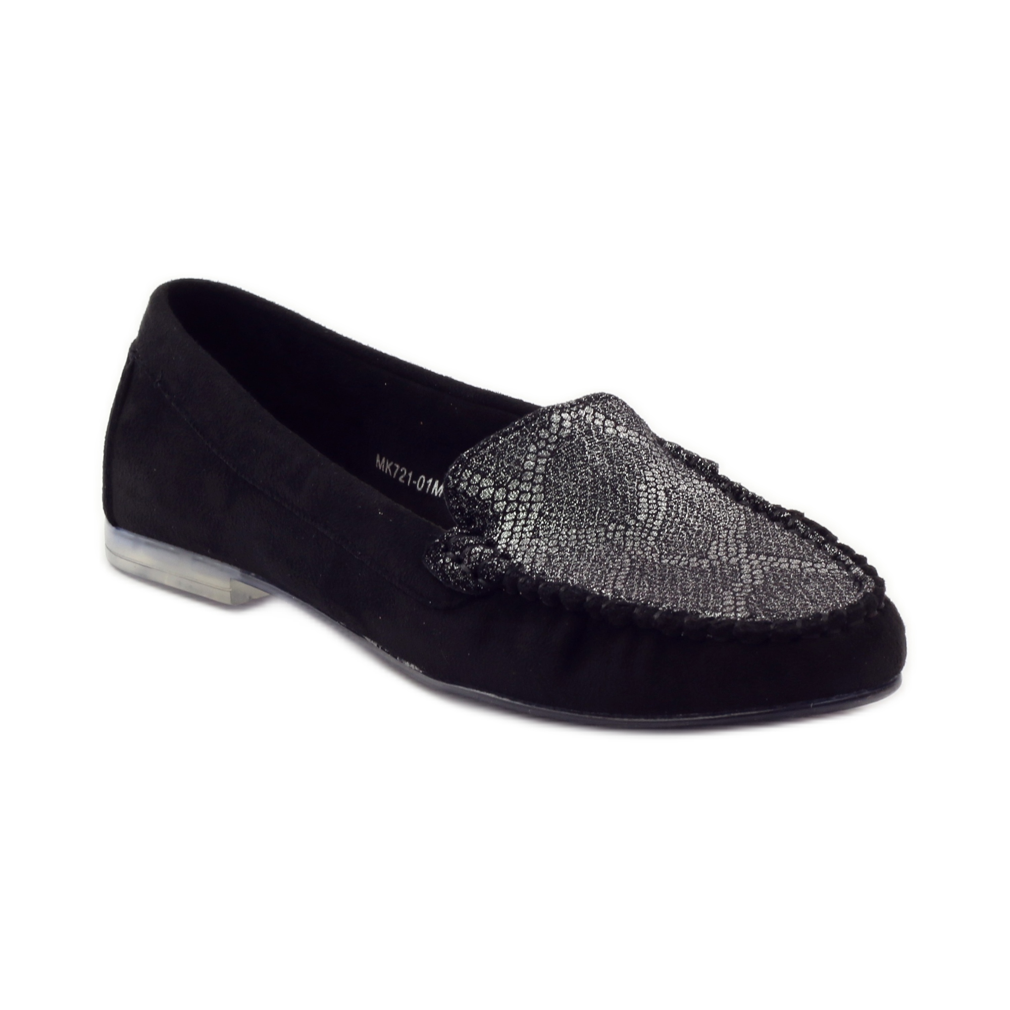 Upptäck lyx och elegans med Sergio Leone 721 loafers i en unik kombination av svart och grått. Dessa slip-on-skor för kvinnor är ett perfekt val för kvinnor som vill framhäva sin stil och klass i alla situationer. Mockasinerna är gjorda av ekologiskt mockaläder av hög kvalitet, vilket gör dem inte bara attraktiva utan också miljövänliga.