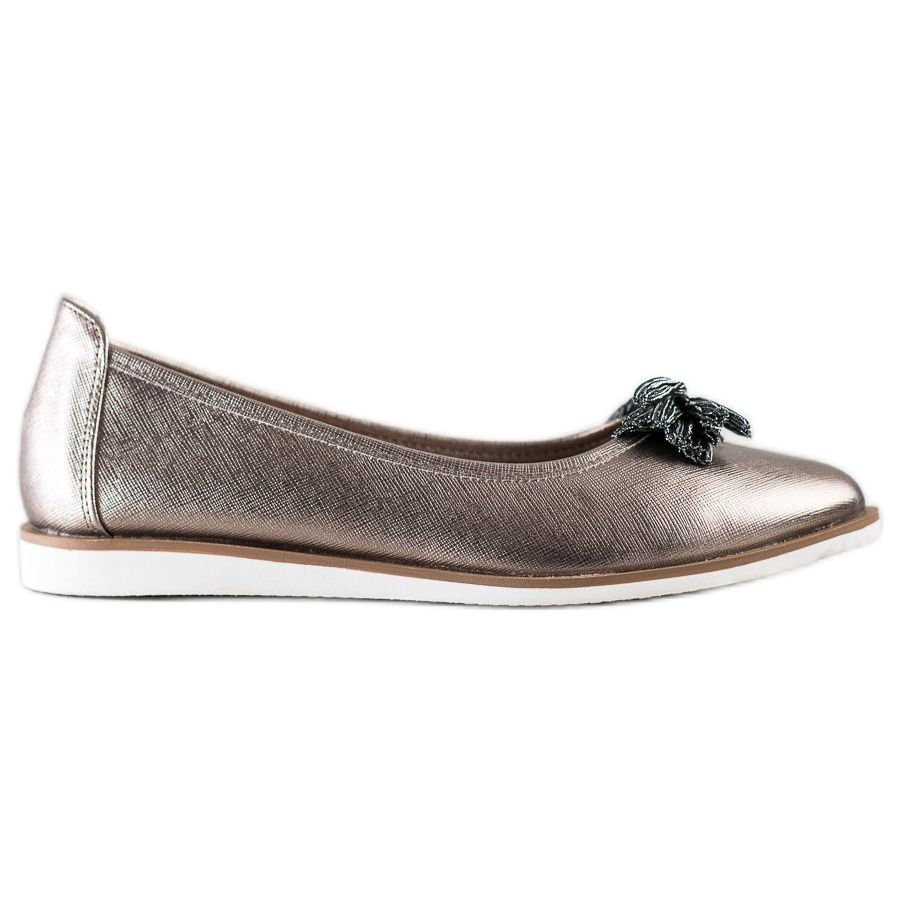 Ovandeln gjord av högkvalitativt ekologiskt läder i en attraktiv, flerfärgad brun nyans kommer att charma varje kvinna som uppskattar inte bara modetrender utan också uppmärksamhet på detaljer. Dessa skor, även om de är utrustade med en inbyggd, mjuk klack och ingen häl, garanterar stegstabilitet tack vare en solid plastsula med en praktisk slitbana.