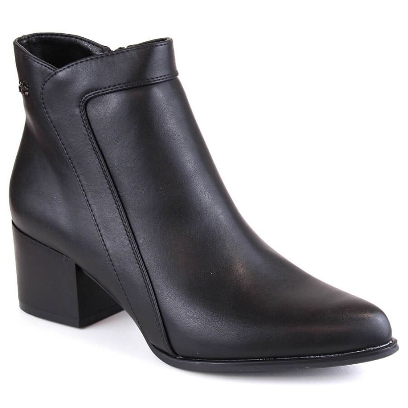 Klassisk, svart Sergio Leone -modell i SK420B är en kombination av kvinnors snitt och praktisk uppvärmning. Den övre delen av högkvalitativt ekologiskt läder, delikat päls inuti och en stabil häl-5,5 cm hög häl säkerställer komfort och stil under svalare dagar. Dragkedjan gör det lättare att ta på sig, och den smala, spetsiga näsan lägger till elegans.