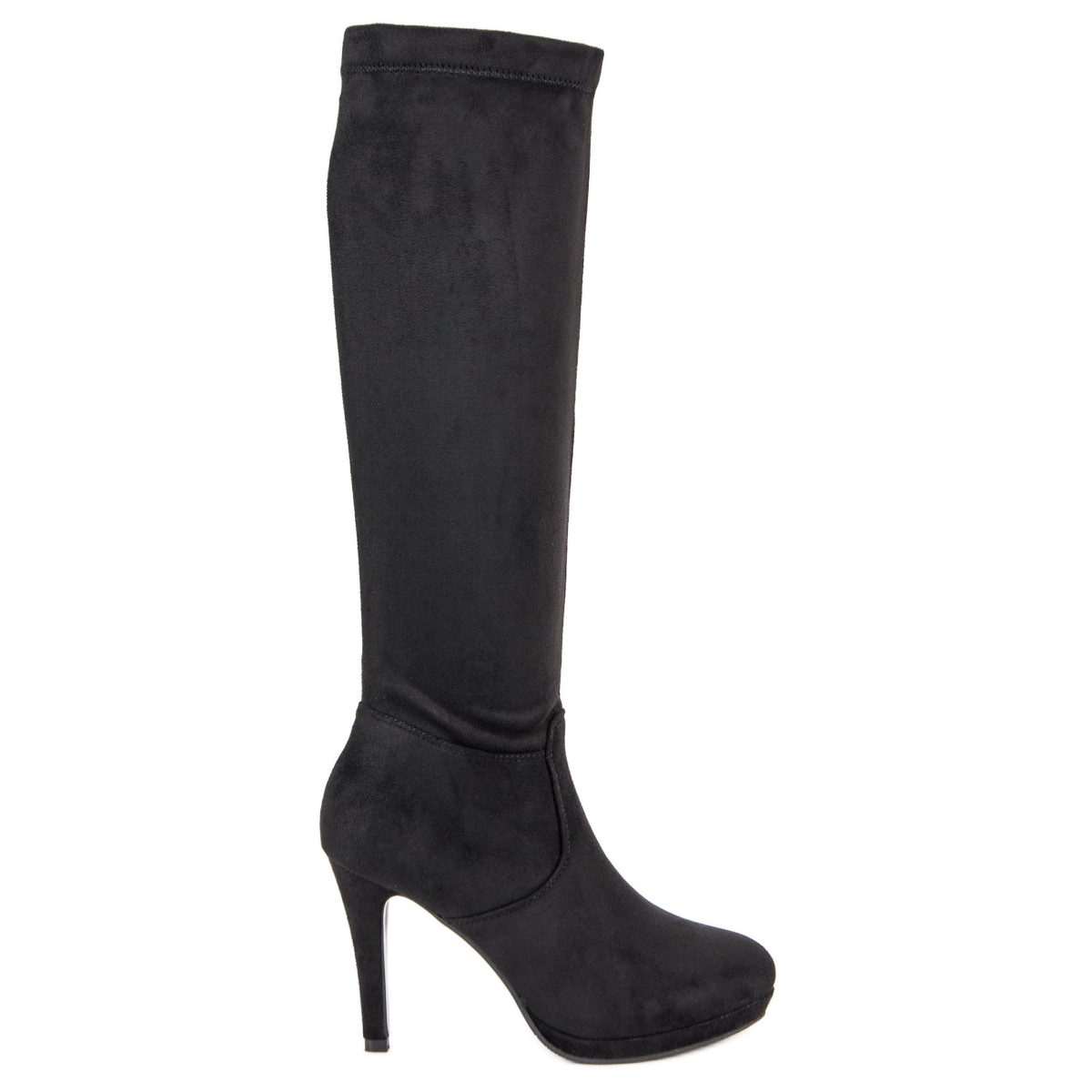 Upptäck frestande stil och oöverträffad komfort med svarta stövlar från Small Swan! Dessa supersexiga högklackade stövlar i mocka är det perfekta valet för varje kvinna som vill framhäva sina tillgångar. Höjden på det övre som når knäet och den eleganta skärningen gör att de passar perfekt till benet, vilket ger det smalhet och elegans.