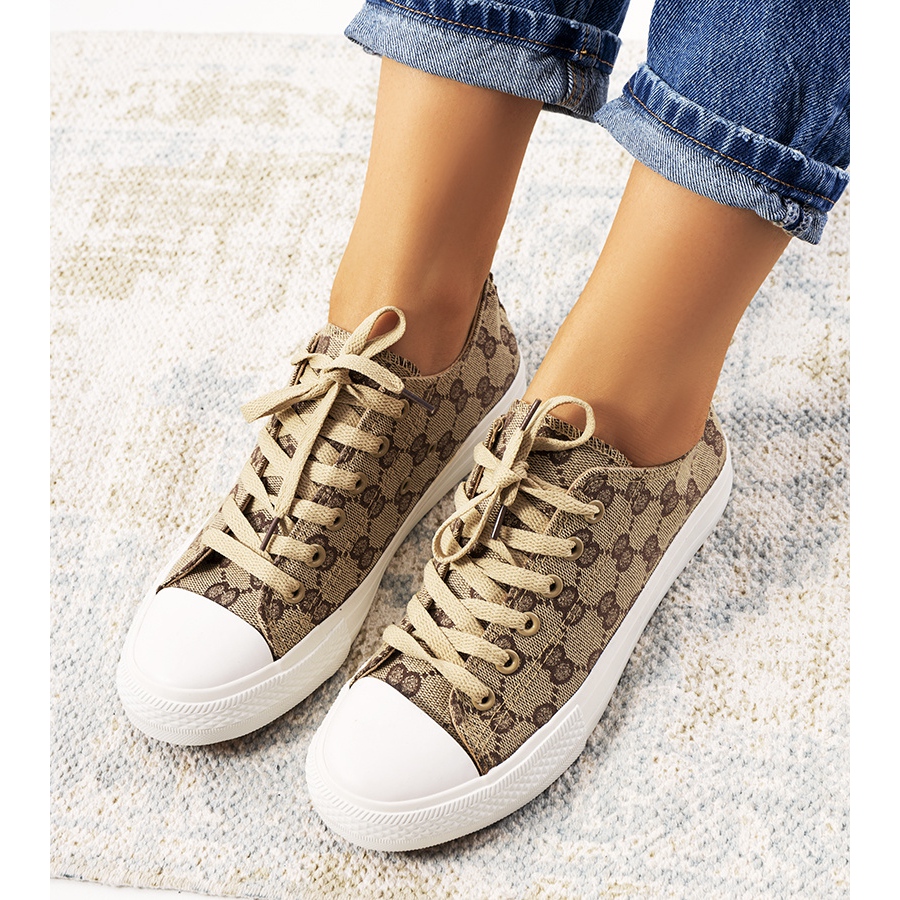 Upptäck en unik stil med Sheilas beige sneakers för kvinnor! Denna tidlösa modell kombinerar original design och moderiktig karaktär, vilket gör dem till ett måste i varje garderob. Deras övre, dekorerad med ett stilfullt mönster, lägger till friskhet och uttrycksfullhet, och kombinationen av beige och bruna färger gör att de passar perfekt med olika outfits.