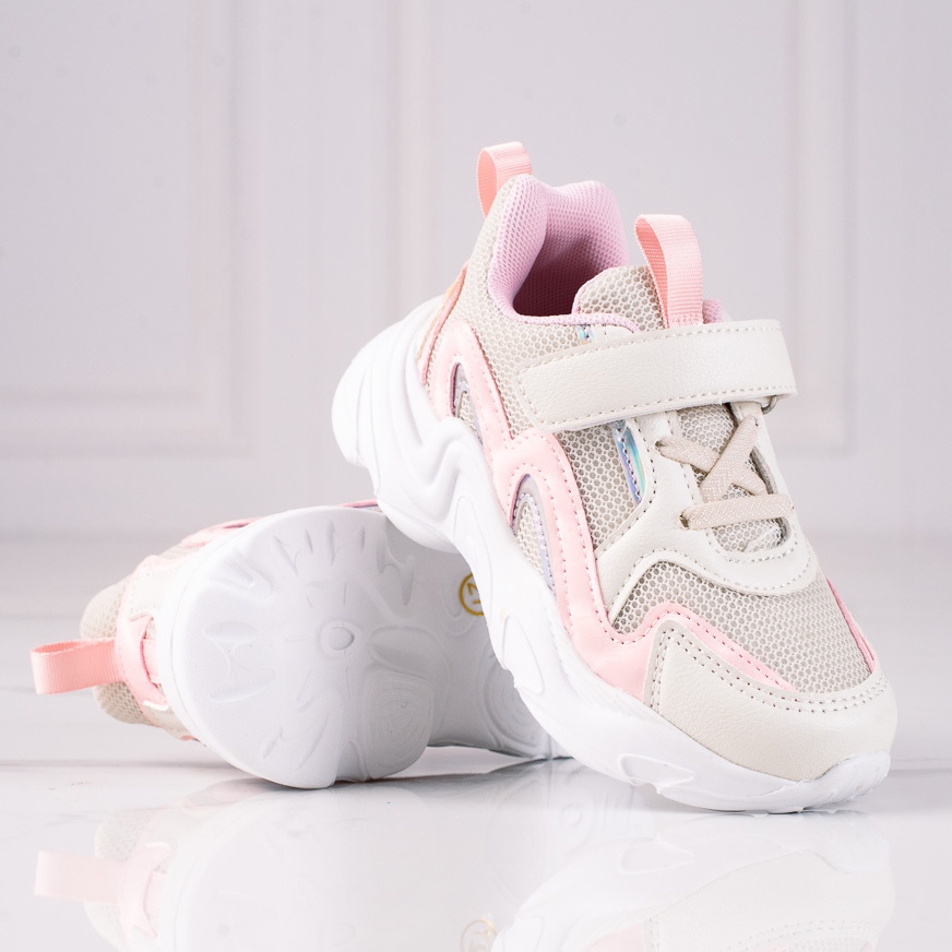 SHELOVET Shelovet barnsneakers med kardborrebeige rosa
