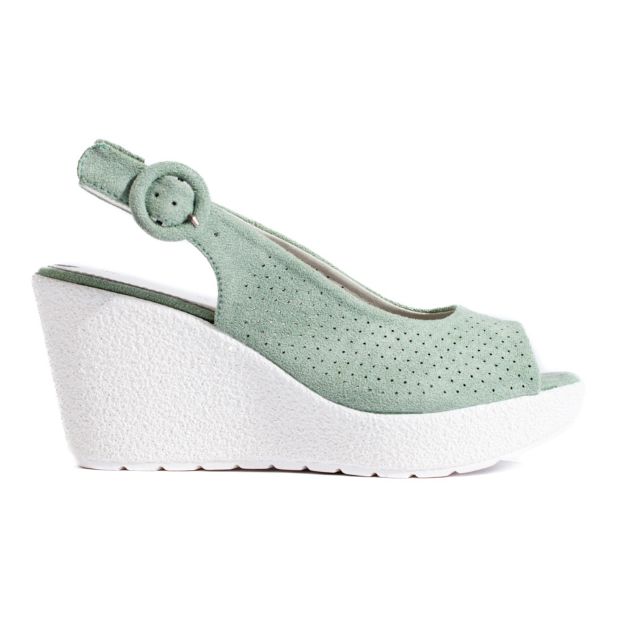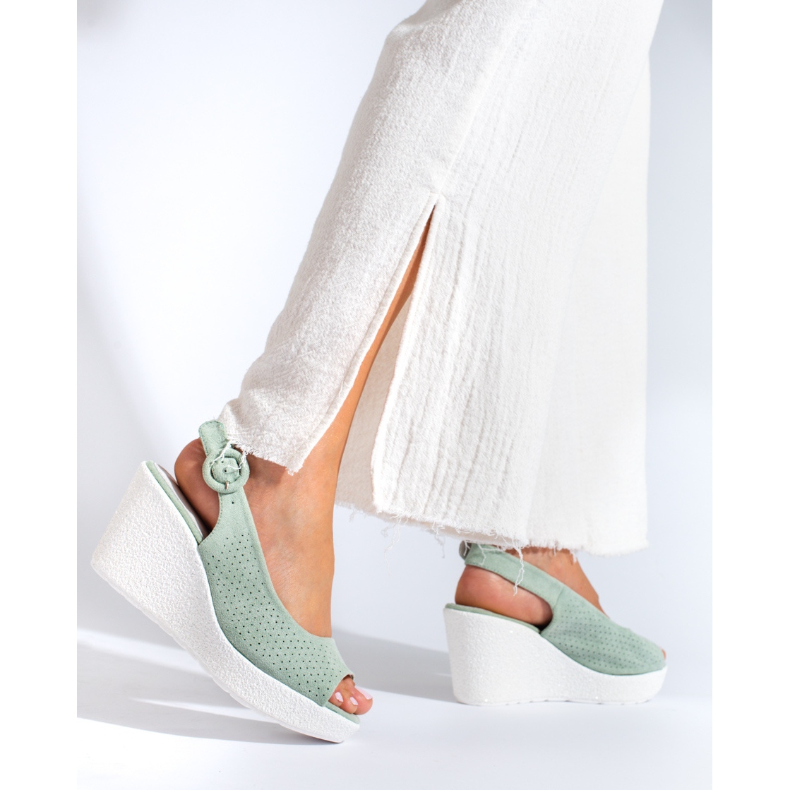 Sandalerna har en öppen klack, vilket säkerställer komfort och rörelsefrihet. Tillverkade av ekologisk mocka av hög kvalitet, de ser extremt snygga ut, och deras innersula i naturligt läder kommer att säkerställa komforten för dina fötter hela dagen. Tack vare en 3 cm hög plattform och en kil som stiger till 8 cm kommer du att känna dig självsäker och feminin utan att behöva oroa dig för obehag.