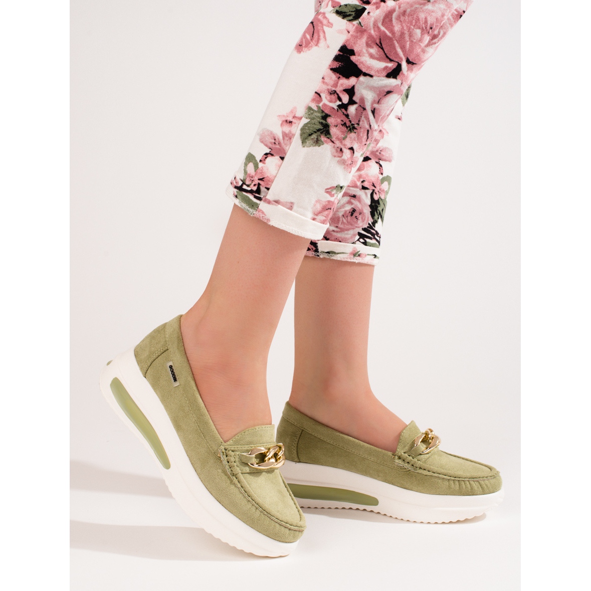Detaljer: Shelovet gröna wedge loafers för kvinnor