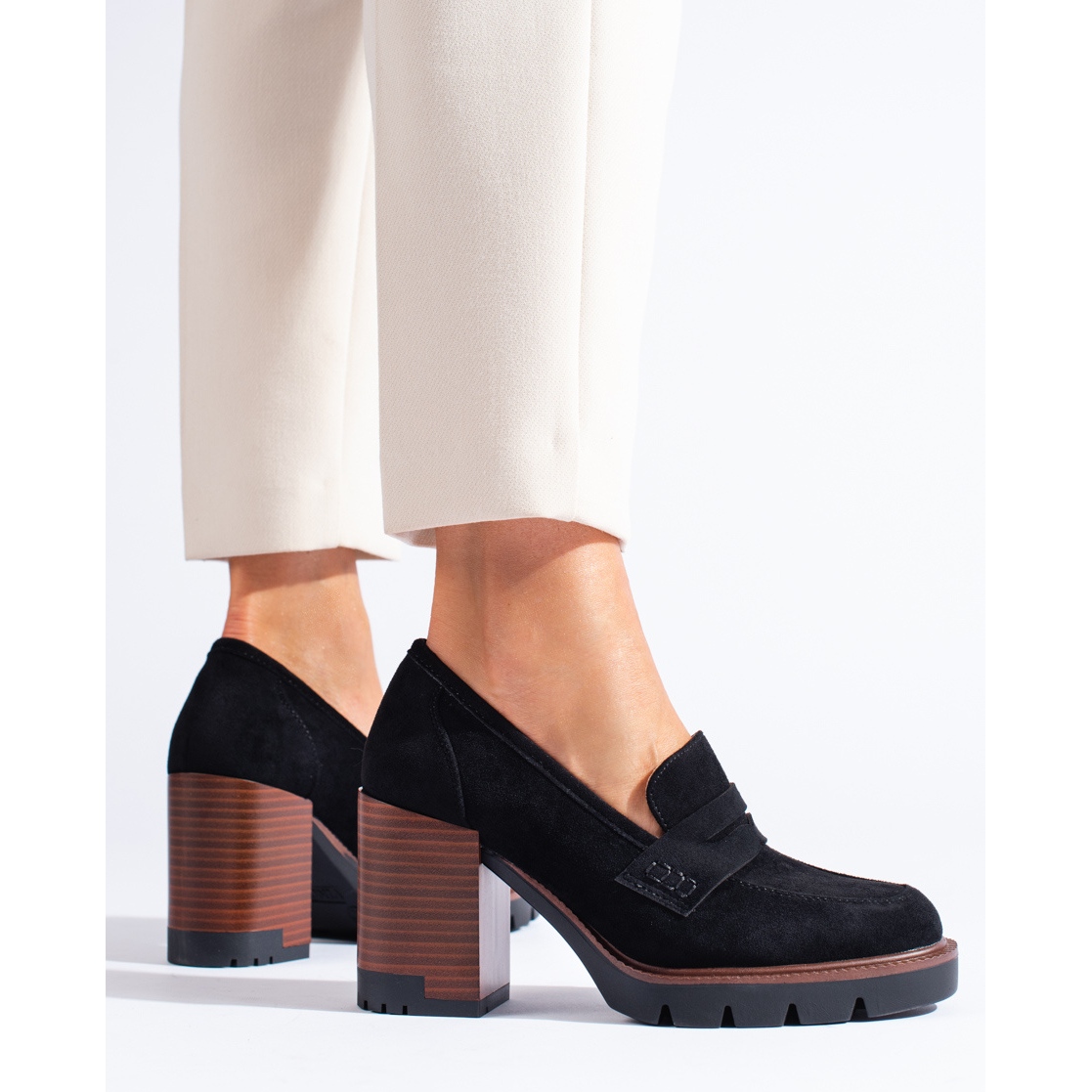 Högklackade damskor i mocka från Shelovet är kvintessensen av elegans, perfekta för varje kvinna som värdesätter komfort och stil. Dessa klassiska och moderna skor skapades för dynamiska och självsäkra kvinnor som söker en kombination av funktionalitet och moderiktig design i vardagen.