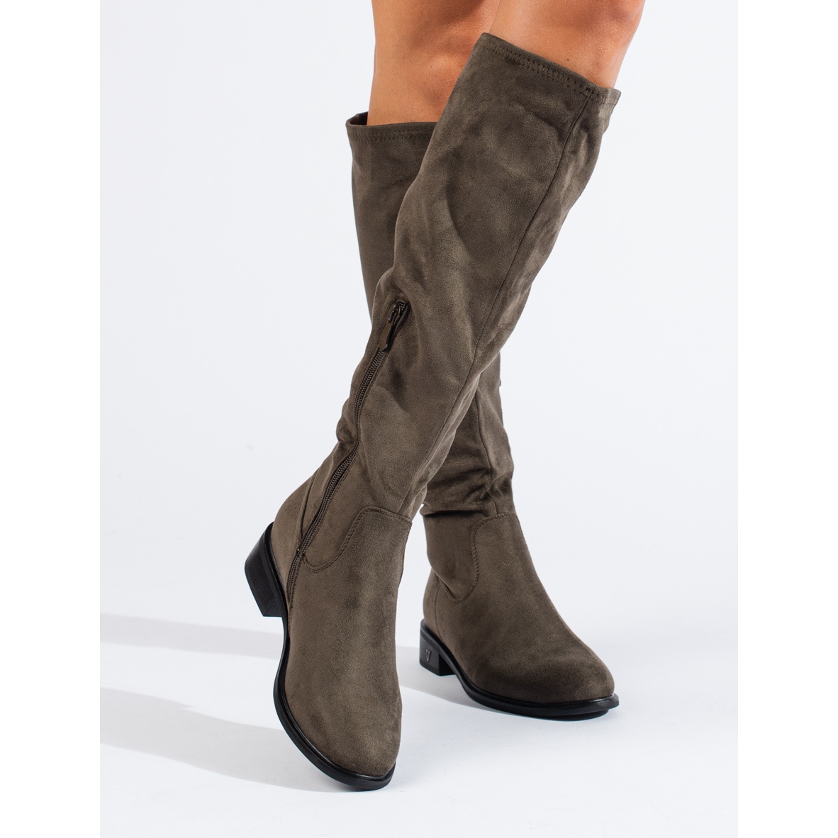 SHELOVET Shelovet kvinnors mörkgröna mockastövlar