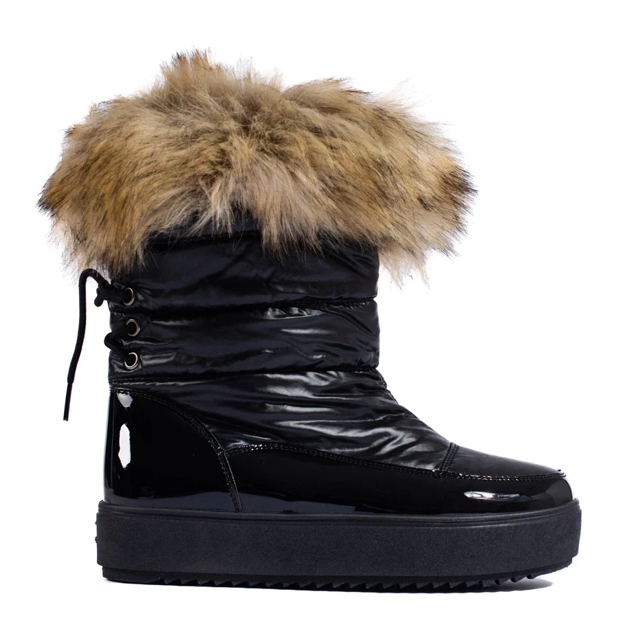 Kvinnors svarta snöstövlar - varma, snygga och bekväma dagligen. Det klassiska, svarta snittet med päls vid kanten av den övre kombinerar funktionaliteten med ett avslappnat utseende, tack vare vilken skorna kommer att fungera för höstvandringar och urbana utgångar.
