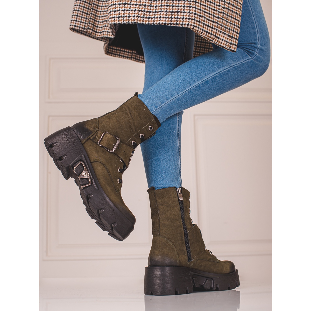 Tillverkad av 100 % naturligt läder, Shelovet varumärkesarbetare är hållbara och resistenta mot förstörelse. Den gröna färgen på skorna är ett extraordinärt val - en stilfull avvikelse från klassisk svart eller brun, vilket lägger till originalitet och sofistikering till varje styling.