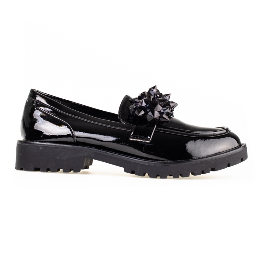Detaljer: Shelovet loafers för kvinnor lackade med svarta kristaller