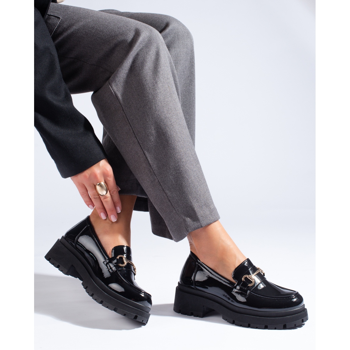 Lackade mockasiner med en tjock sula från Shelovet-kollektionen är ett val för kvinnor som värdesätter inte bara aktuella trender, utan också komfort och mångsidighet. Den presenterade produkten är en perfekt kombination av elegans och avslappnad stil, vilket gör skorna perfekta för både vardagsbruk och mer formella tillfällen.