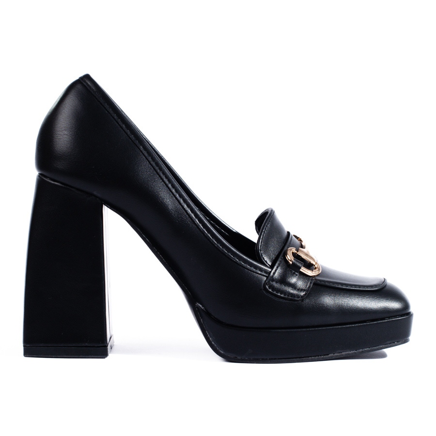 Svarta Shelovet pumps med tjock klack är synonymt med både komfort och elegans, vilket gör att varje kvinna känner sig speciell i varje situation. Deras funktionalitet och höga utförande kommer att möta förväntningarna hos även de mest krävande kunder som letar efter perfekta skor för många tillfällen.