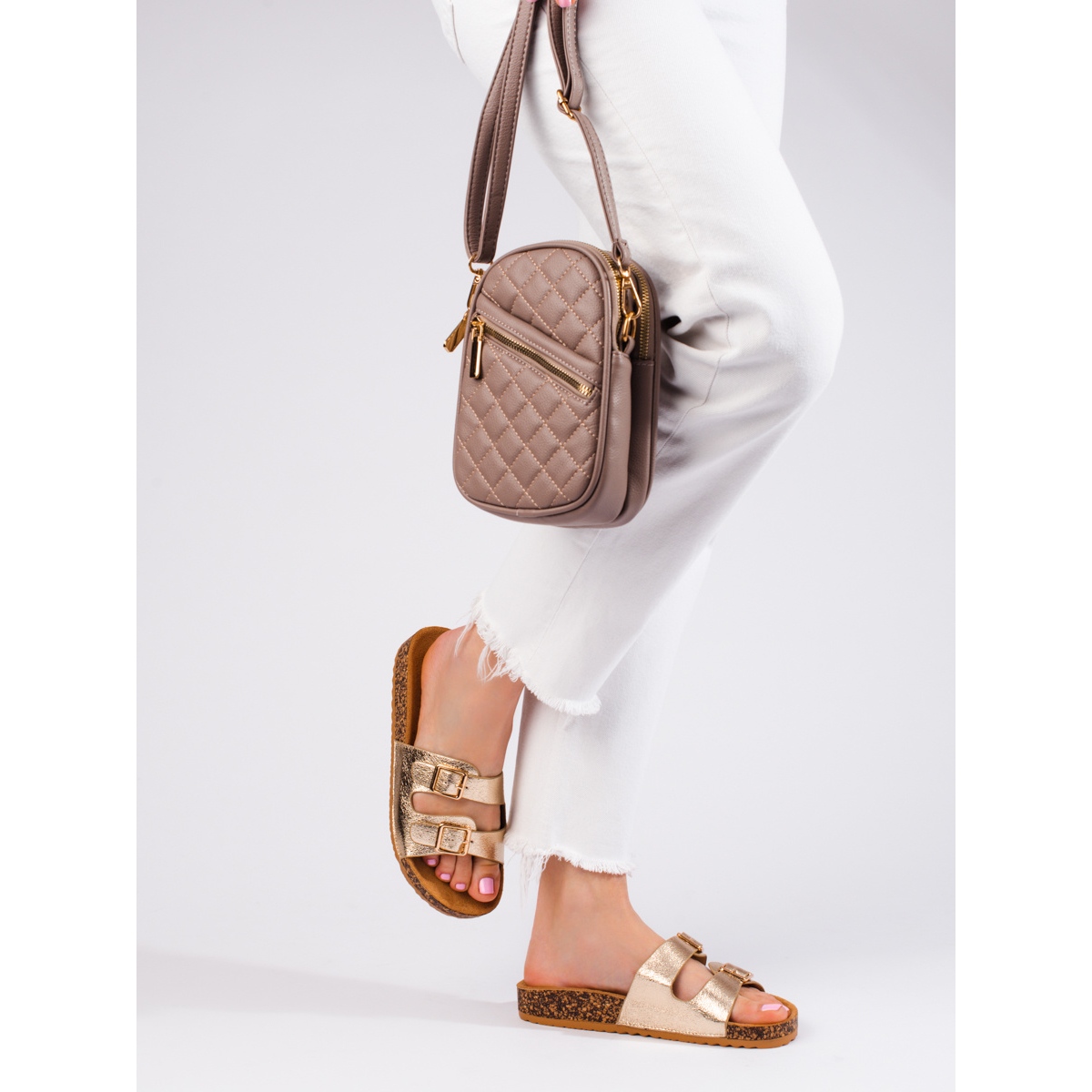 Upptäck elegans och komfort varje dag med guldtofflor för kvinnor med Shelovet-spännen. Dessa snygga flip-flops passar perfekt till en modern kvinnas avslappnade karaktär, och kombinerar ett moderiktigt utseende med komfort att bära. De är gjorda av ekologiskt läder av hög kvalitet och erbjuder inte bara hållbarhet utan också tidlös stil.