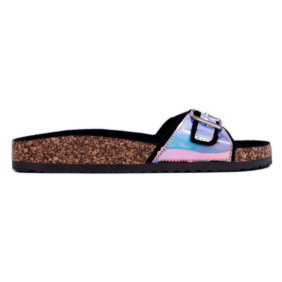 Holografiska svarta Shelovet kork flip-flops - Komfort möter stil