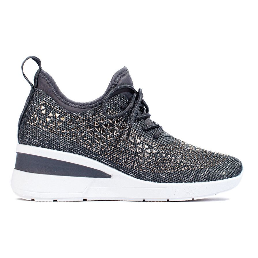 Vi erbjuder unika wedge sneakers i textil från märket Shelovet, som kommer att vara ett perfekt val för varje dag. Dessa snygga sportskor i en elegant grå nyans kommer säkerligen att locka uppmärksamhet med sin unika estetik. Kombinationen av komfort och fashionabla detaljer, som strass och strass, gör dem perfekta för både avslappnade och mer avslappnade stilar.