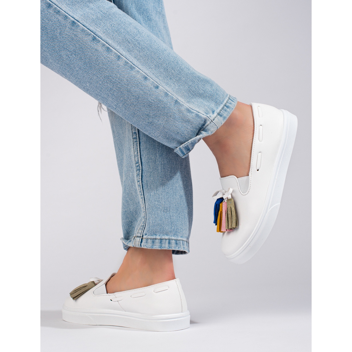 SHELOVET Shelovet Vit Mocka Fringe Slip On