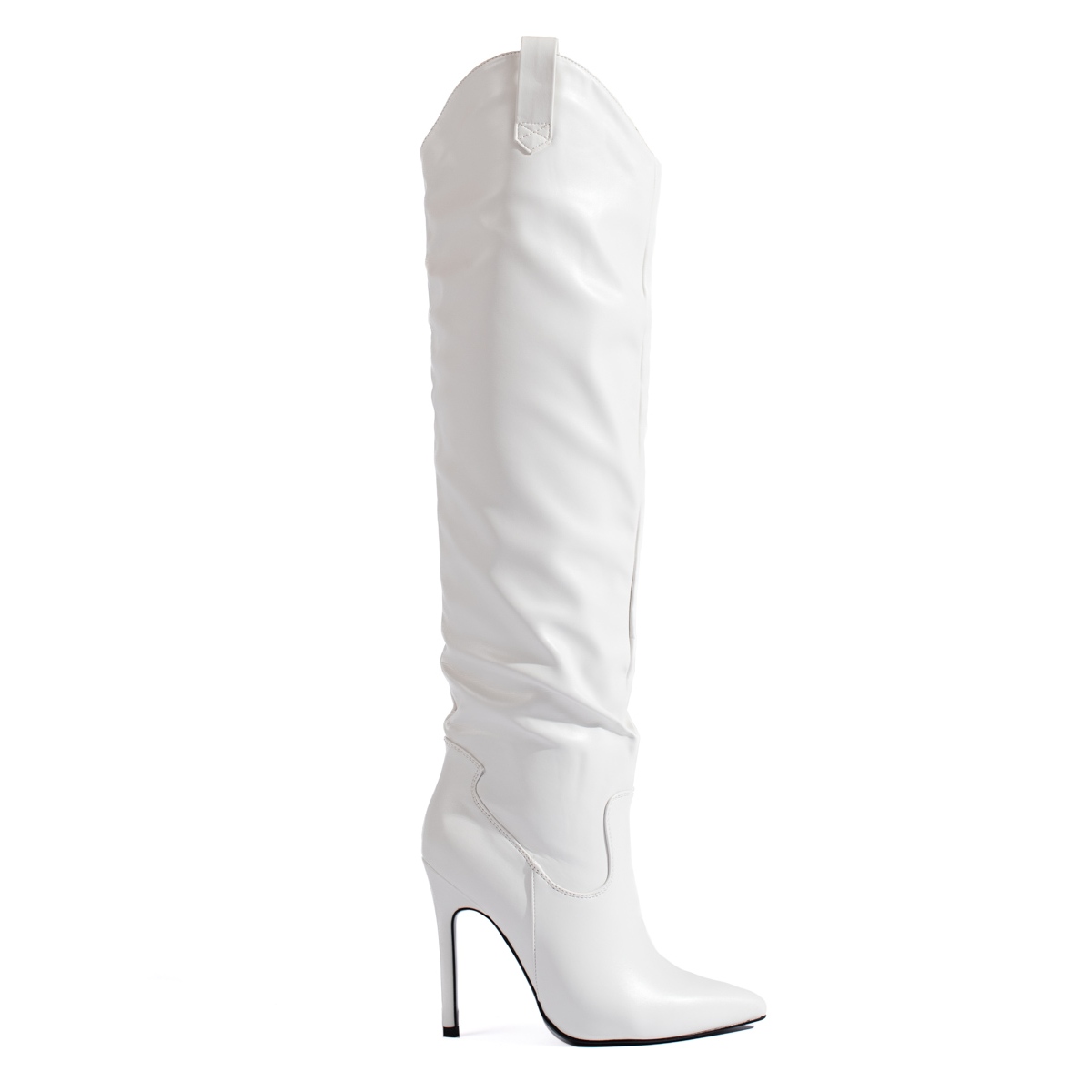 Detaljer: Shelovet vita högklackade stövlar för kvinnor