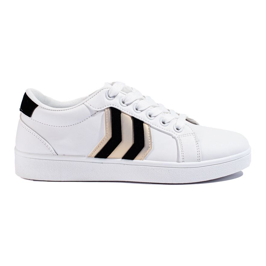 Shelovet uppmärksammade detaljer och skapade en modell som kombinerar vitt med svarta och guldaccenter, vilket skapar ett unikt och moderiktigt utseende. Shopping, promenader eller möten - dessa skor är perfekta för alla situationer. Tack vare textilinlägget kommer dina fötter att kunna andas, vilket är viktigt under varmare dagar.