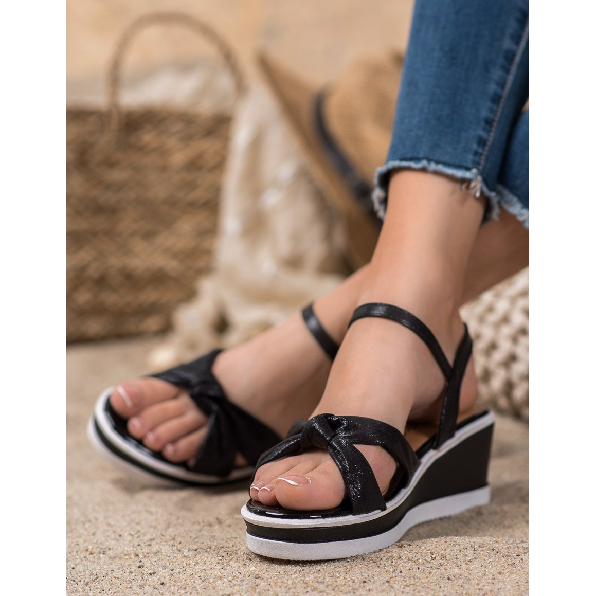 Detaljer: SHELOVET Shiny Wedge Sandals svart