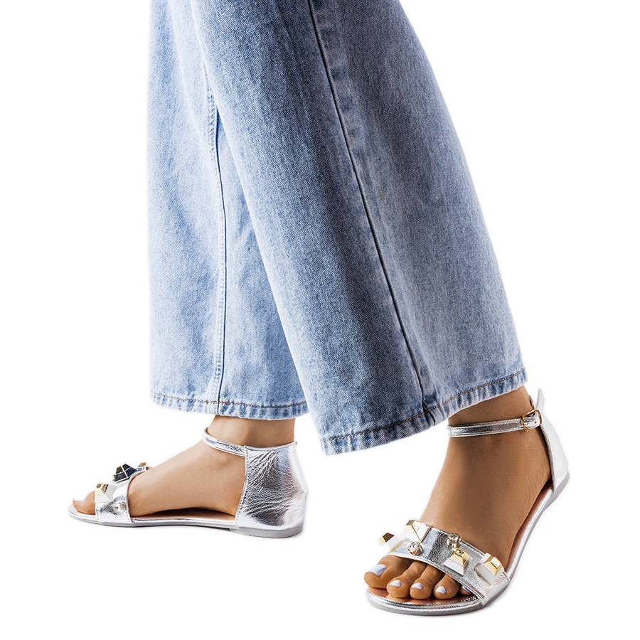 Upptäck unik stil och komfort med dekorativa Riverdale-sandaler i silver! Dessa klassiska damsandaler är det perfekta valet för sommardagar, som kombinerar elegans och komfort. Tillverkade av ekologiskt läder av hög kvalitet garanterar de hållbarhet och ett moderiktigt utseende. Deras metalliska silverfärg och guldaccenter i form av nitar ger varje styling en unik karaktär.