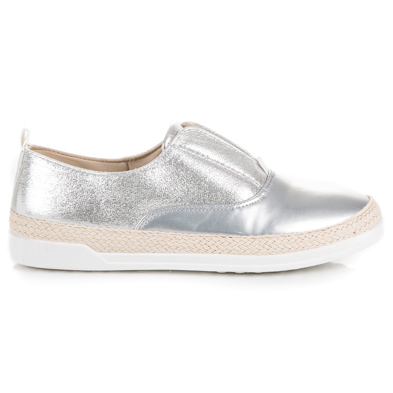 Silver Sneakers Grey Espadrilles är extremt snygga damskor som säkerligen kommer att dra till sig uppmärksamhet. Dessa trendiga espadrillor är gjorda av högkvalitativt läderliknande material och erbjuder en unik metallisk glans, vilket gör dem perfekta för mode och avslappnad vardagsstyling.