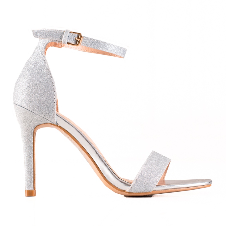 Silver höga klackar med glitter VINCEZA är en unik modell som säkert kommer att locka uppmärksamheten från alla älskare av elegant stil. Dessa damsandaler från den välkända tillverkaren Vinceza kommer att ge lite glans till varje kvällsstyling. Tack vare den inbyggda, förstyvade hälen och en bekväm, slät plastsula säkerställer de komforten att bära hela kvällen.