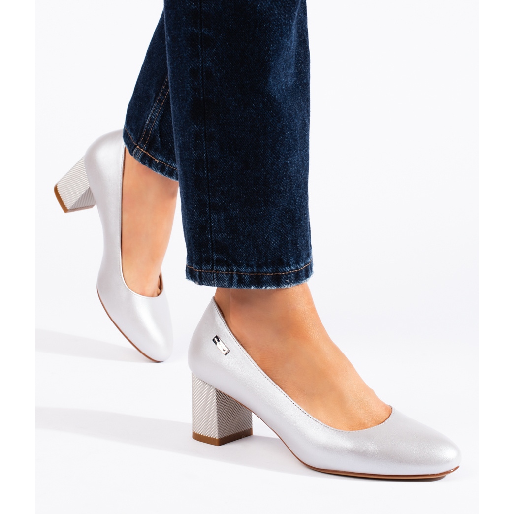 Skorna är färdig med naturläder, vilket säkerställer optimal ventilation och komfort när du går. En slät plastsula tillåter några steg på olika ytor. Det perfekta komplementet till eleganta kläder, dessa silverpumpar kommer definitivt att bli ett favoritelement i din skorskollektion.