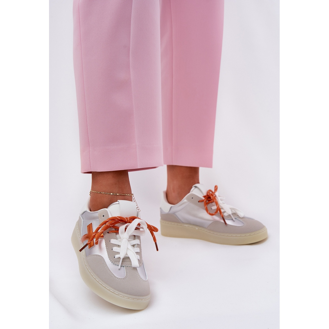 Upptäck vår nyhet - låga kvinnors sportskor i en elegant, silverfärg. Dessa sportskor är tillverkade av högkvalitativt ekosläder och kombinerar fashionabla design och oöverträffad bärande komfort. Deras låga snitt med rundade tår och klassisk snörning gör dem till ett perfekt val för många stilar - från vardag till mer sporter.
