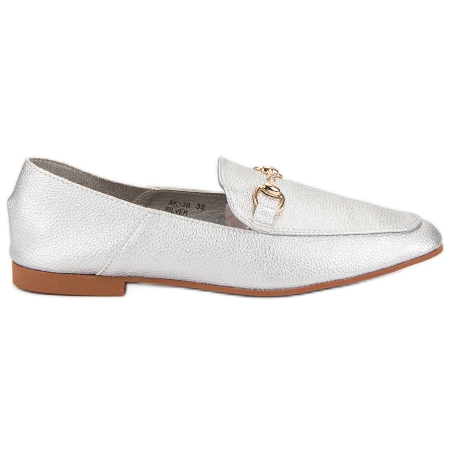 Silvergrå herrar från varumärket Comer är ett perfekt val för kvinnor som vill lägga till en unik accent till sin garderob. Dessa eleganta skor kännetecknas av gyllene detaljer som framhäver deras fashionabla karaktär, vilket gör dem till den perfekta accessoaren för arbete eller formella möten.