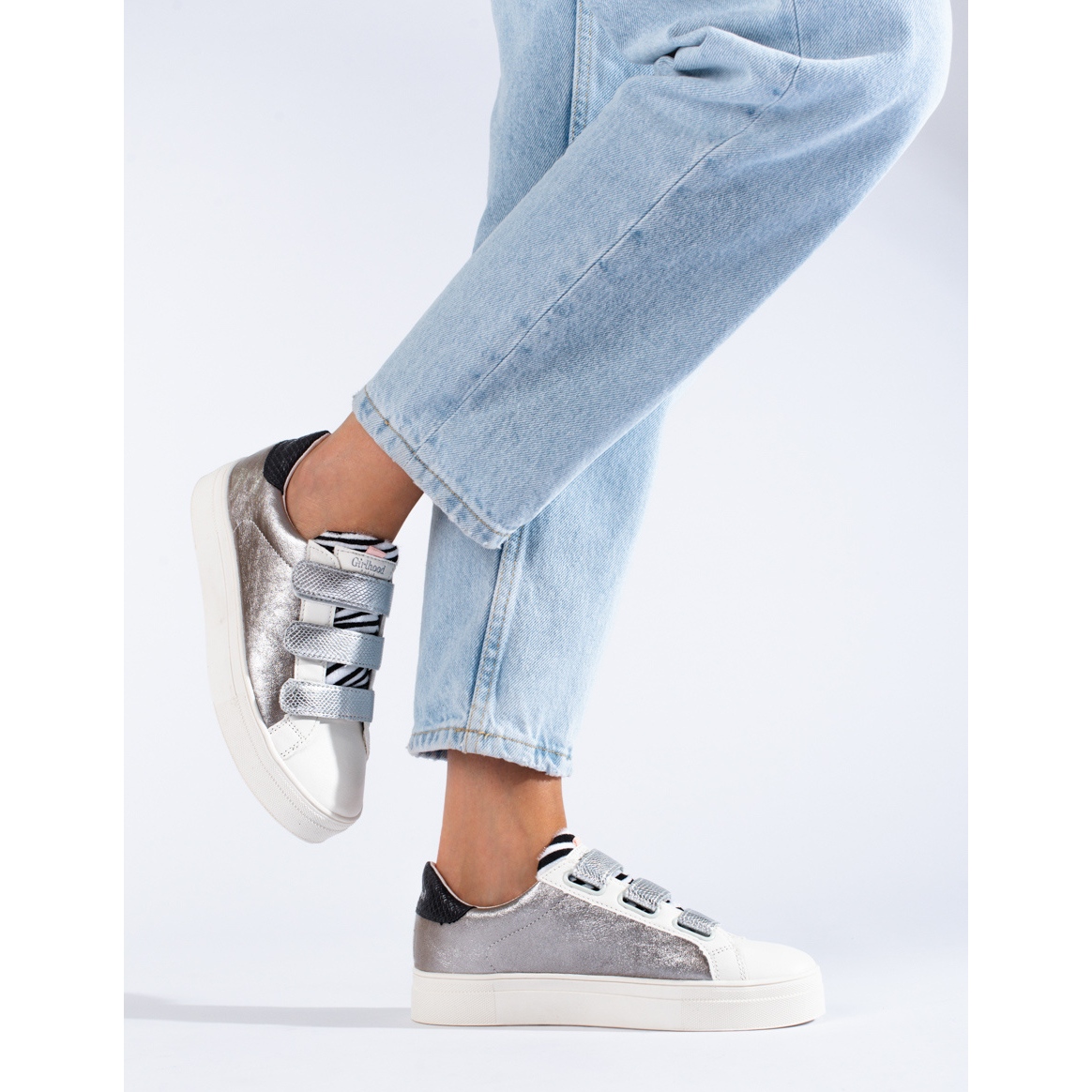 SHELOVET Silver och vita Shelovet sneakers med kardborreband för kvinnor silver-
