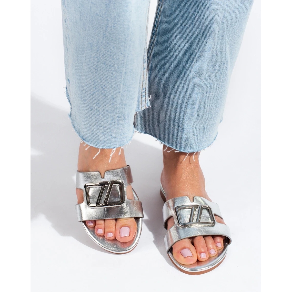 Detaljer: Silver platta sandaler med dekoration Shelovet