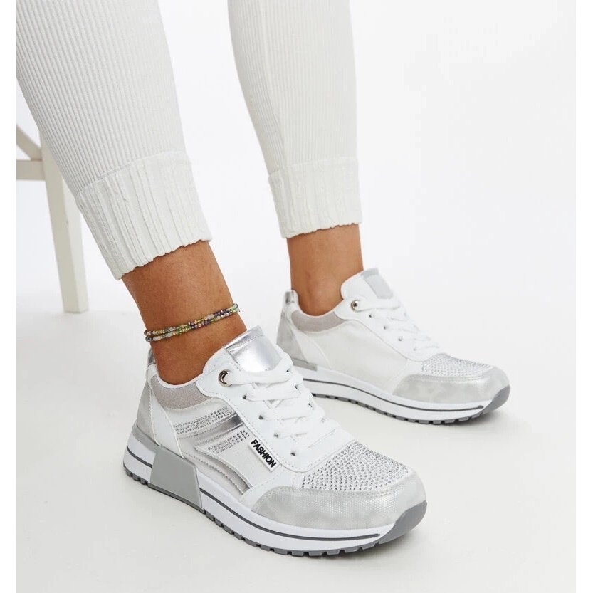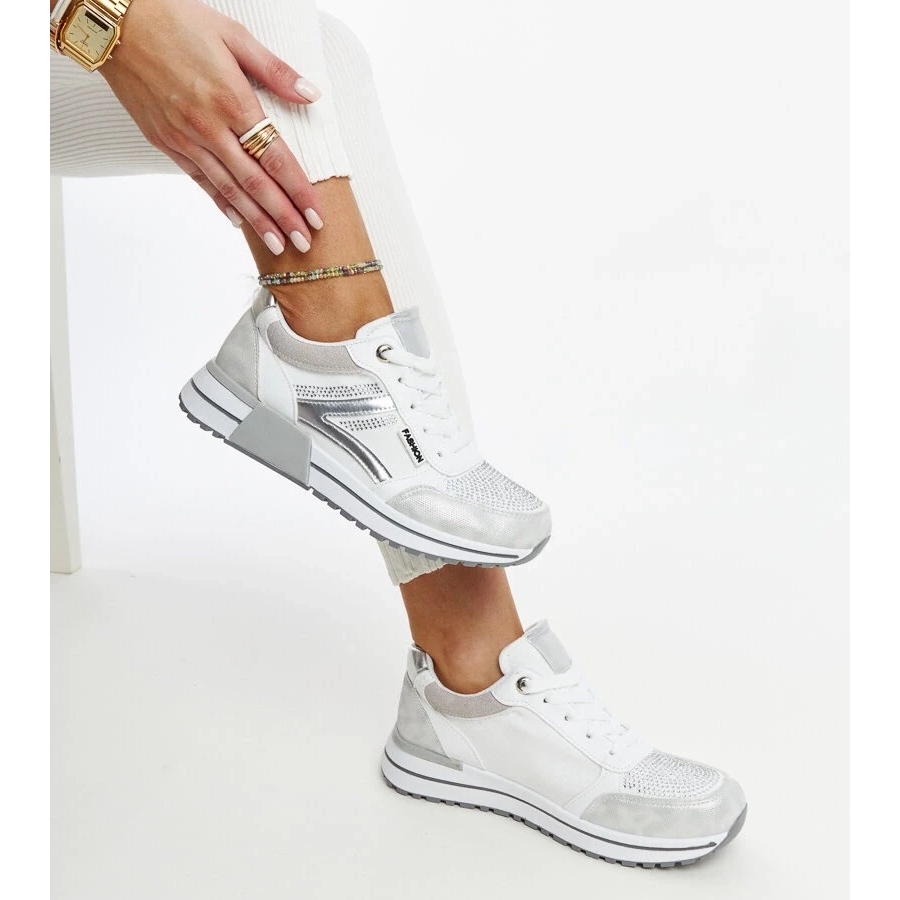 Dessa sneakers, förvarade i vacker silverfärg, smälter in perfekt med olika stiliseringar, från vardagliga kläder till de mer eleganta. Deras låga höjd och en bekväm 10,5 cm hög plattform gör dem inte bara snygga, utan också praktiska.