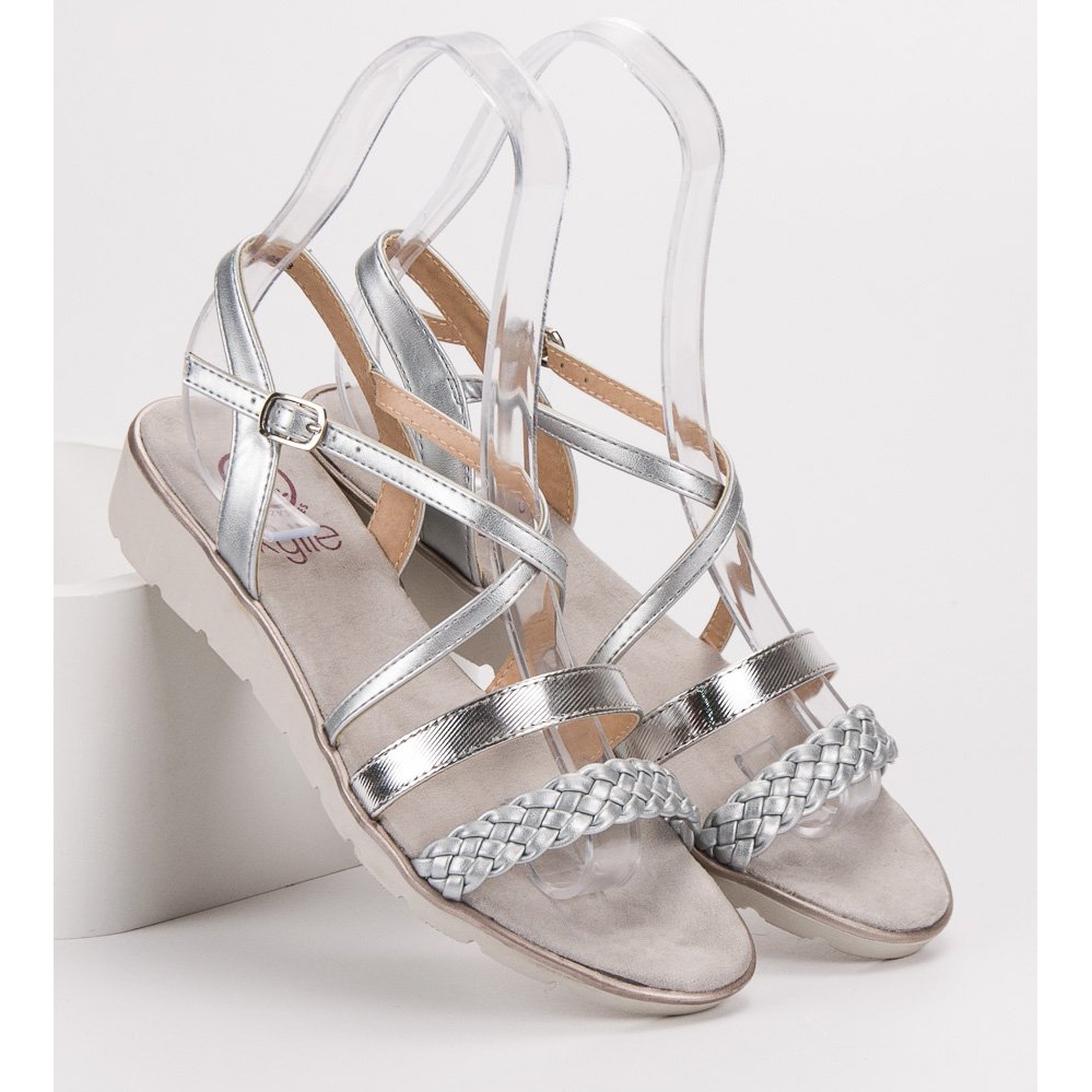 Upptäck komfort och stil i grå och silver platåsandaler från Kylie! Dessa eleganta och feminina sandaler knäppta med ett praktiskt spänne är ett perfekt val för våren och sommaren. De har en 3 cm hög platt klack, vilket säkerställer bärkomfort hela dagen, oavsett om du ska gå en promenad, shoppa eller träffa vänner.