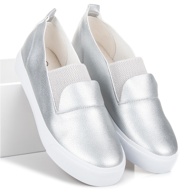 Här är L&H Silver Slippers i en elegant grå nyans, som kombinerar tidlös stil och modetrender. Dessa extremt bekväma slip-on-skor för kvinnor är ett perfekt val för alla tillfällen - både för en romantisk dejt, en vardagspromenad och shopping. På grund av att de inte har ett spänne är de lätta att sätta på, vilket gör dem väldigt praktiska.