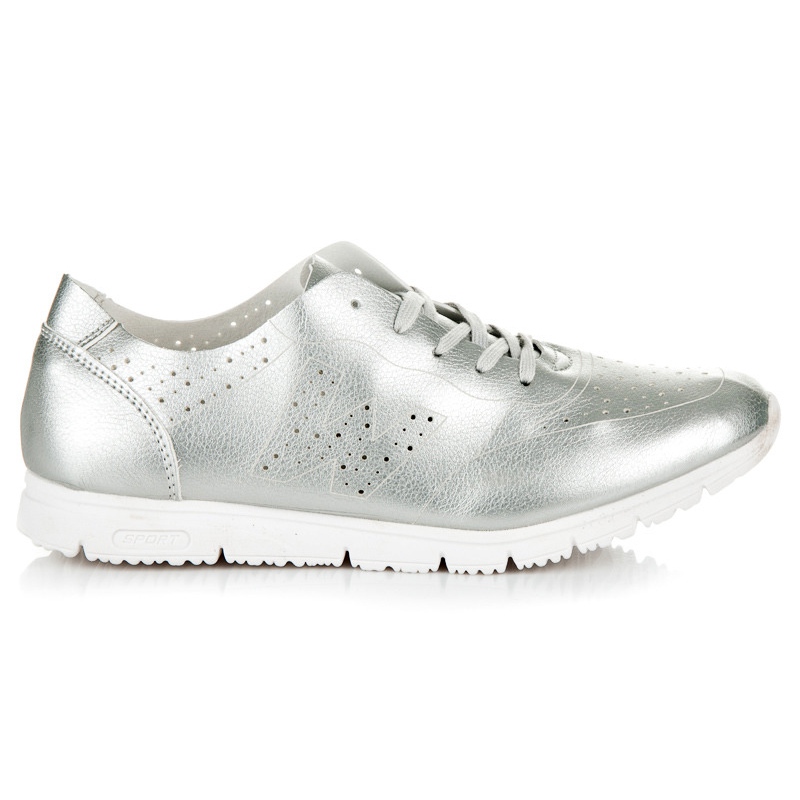 Eleganta och universella sneakers som kombinerar sportig stil med vardagskomfort. Den silvergrå färgen i kombination med genombrutna mönster ger dem lätthet och en subtil lyster, så att du enkelt kan matcha dem till många stilar.