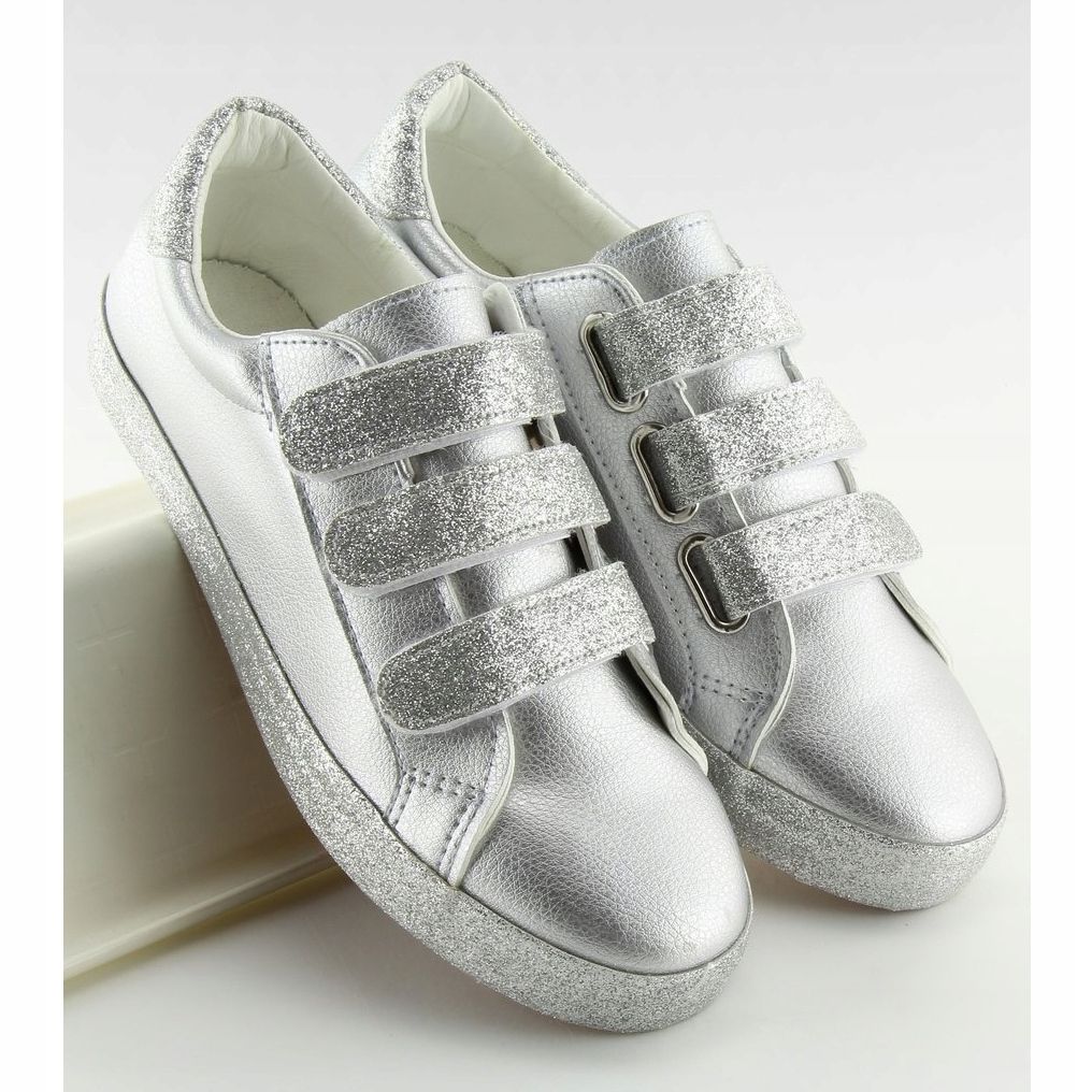 Detaljer: Silver sneakers med kardborreförslutning XL10P Silver grå gul